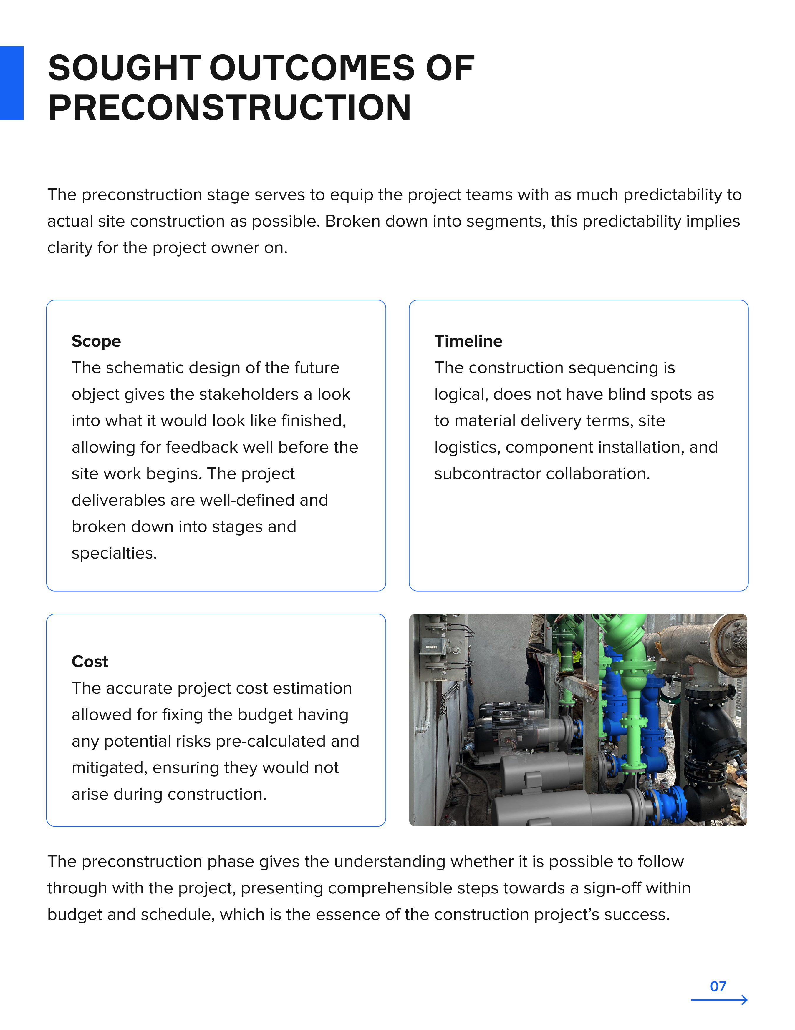 The preconstruction phase is critical to the success of any construction project, as it is during this phase that the project scope, schedule, and budget are established.